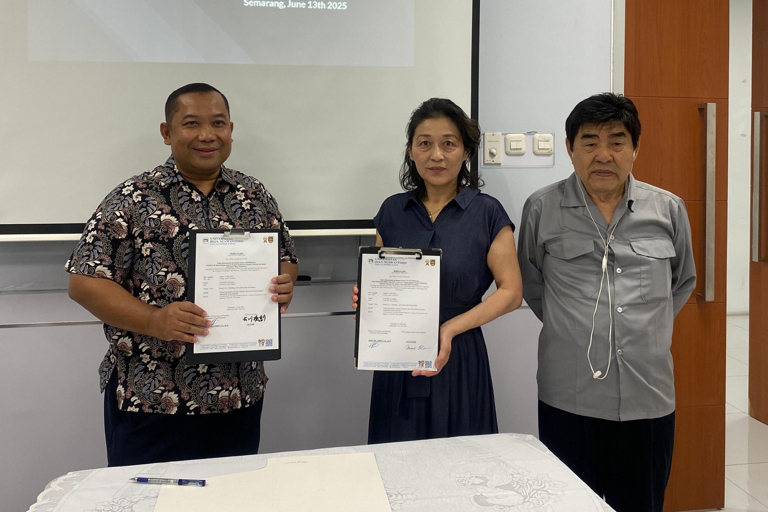 Penandatanganan MoU yang Dilakukan oleh Dekan Udinus dan Perwakilan Elpro Ltd Japan dan NPO Kodomo Mirai Souzou Gakuen oleh Humas Udinus | Jun 20, 2025