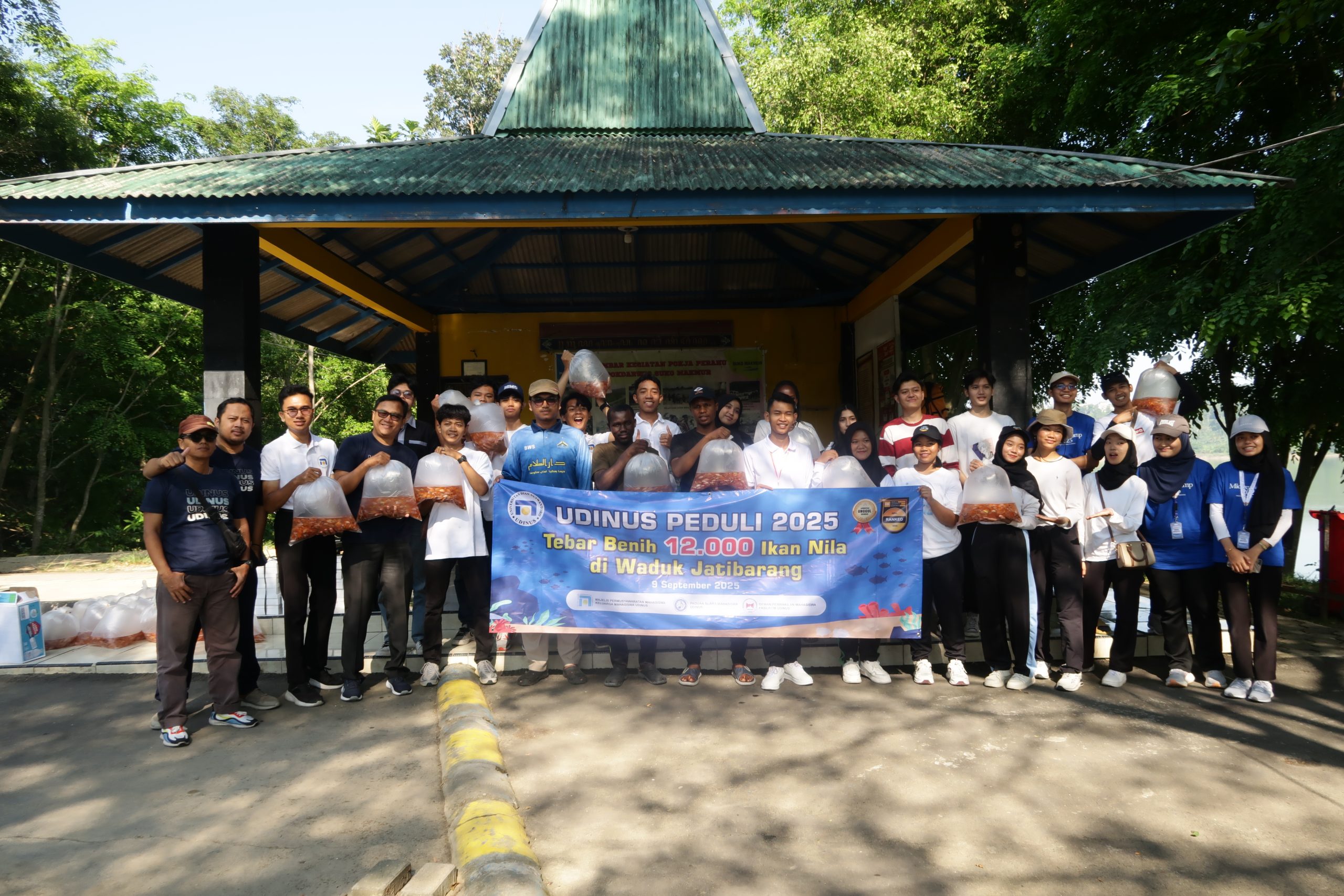 Foto Bersama saat Penebaran 12.000 Penih Ikan di Waduk Jatibarang