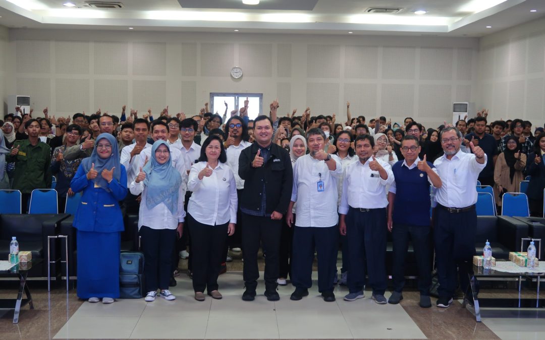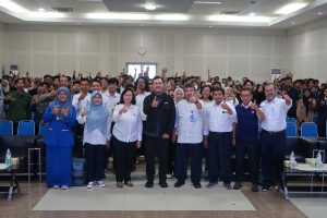 Foto bersama ratusan mahasiswa dan dosen Udinus peserta pendampingan intensif PKM di auditorium, menunjukkan semangat persiapan menuju PIMNAS 2026